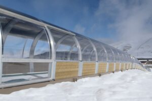 Los requisitos para este proyecto en Sierra Nevada (España) no eran fáciles de cumplir. Una galería completa que cubre dos cintas transportadoras que funcionan en paralelo (una cinta SunKid y una Kaser) que tuvo que ser diseñada, fabricada y ensamblada en sólo tres meses.